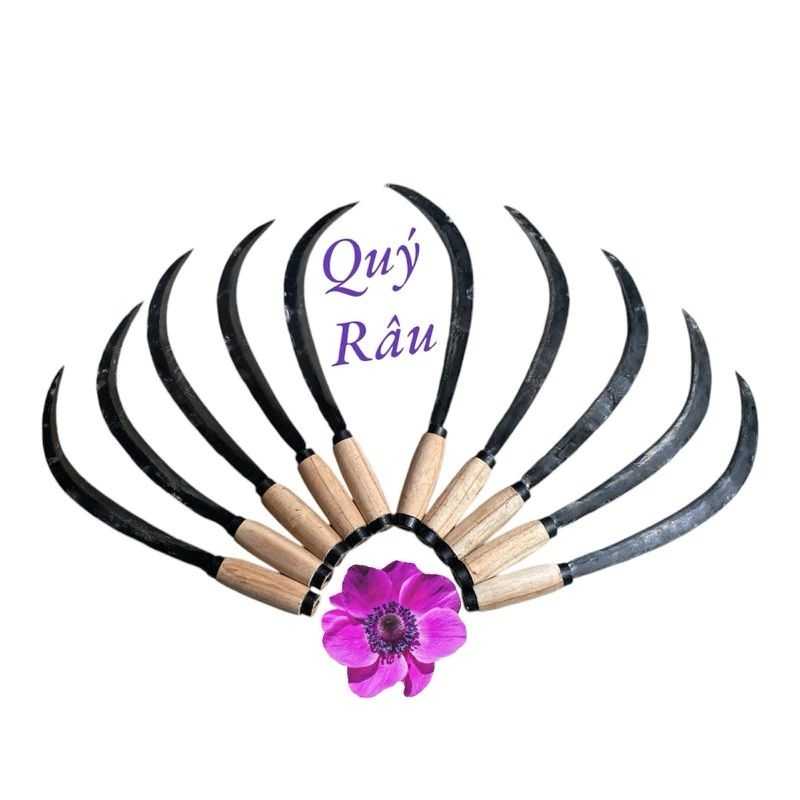Liềm cắt cỏ, cắt lúa, giật nhánh cây. Liềm có cắt chấu thủ công, lưỡi liềm dài cắm thấu cán – Dao Kéo Quý Râu SG
